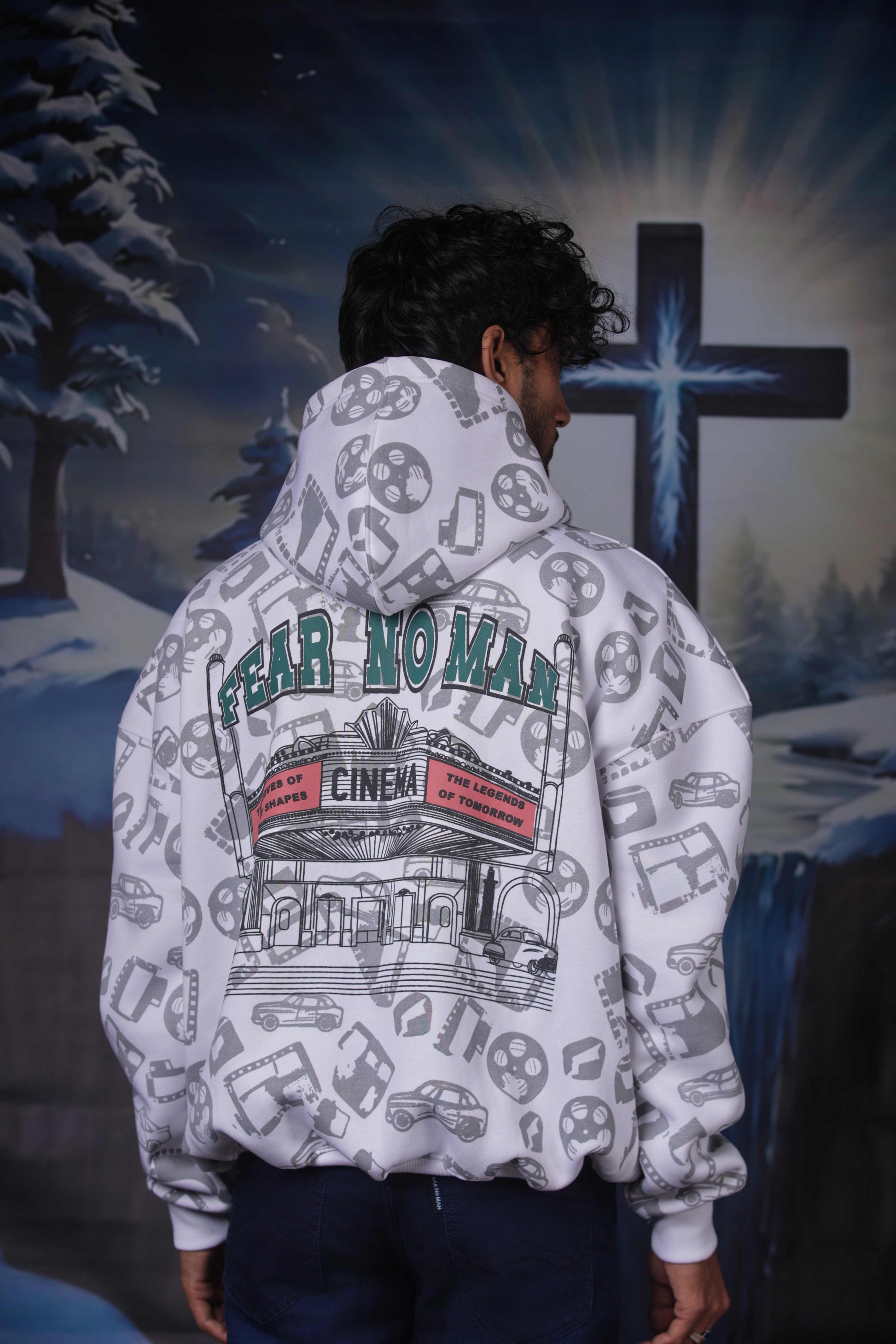 White base hoodie with an all-over directional car print inspired by action boards and movement. Features front and back multi-screen prints made using 6–7 screens with puff and textured detailing. The back carries the quote “The moves of today make the legends of tomorrow.” Made in 420 GSM heavyweight fabric with a classic kangaroo pocket for a structured, premium feel.